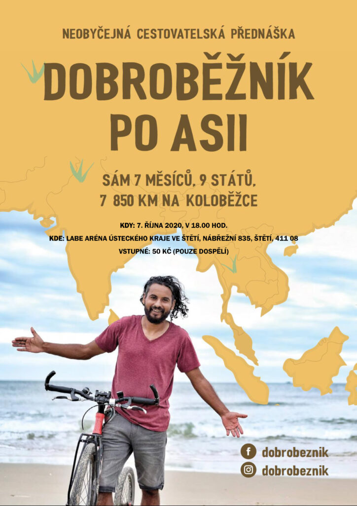 Marek se snaží na svých cestách i pomáhat. Projekt Dobroběžka pomohl 80 dětem z Bangladéše mít lepší vzdělání. Sám sedm měsíců na cestě plné zážitků a nástrah, našlapáno přes 7000 kilometrů z Nového Dillí až do Singapuru.