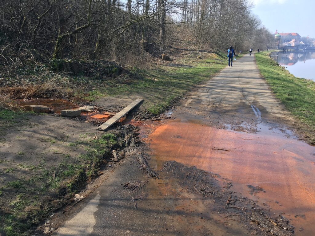 Stezka je v tomto místě v majetku města Roudnice nad Labem. To již situaci řešilo s několika subjekty jako jsou Povodí Labe, České dráhy nebo SČVK. O novém odtoku už bylo rozhodnuto a vybudován bude pravděpodobně v průběhu dubna.