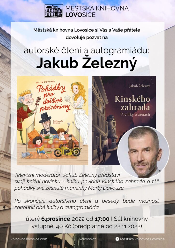 Lovosice – Pečlivý a vždy dobře připravený – takový je dle kolegů Jakub Železný. Novinář a moderátor hlavní zpravodajské relace České televize přijede v úterý 6. prosince do Lovosic. V Městské knihovně v 17 hodin představí svou literární prvotinu – soubor povídek s názvem „Kinského zahrada.“