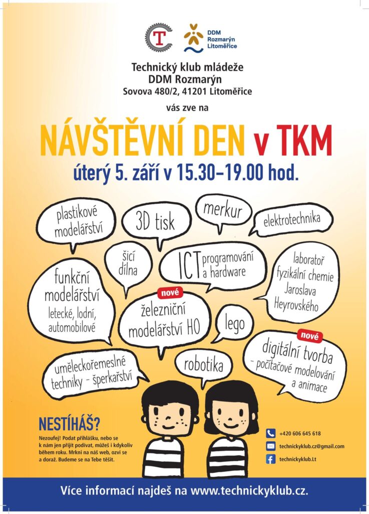 Litoměřice – Technický klub mládeže, který funguje při litoměřickém Domě dětí a mládeže Rozmarýn, pořádá v úterý 5. září od 15.30 do 19 hodin Návštěvní den. Zajděte se tam podívat! Technický klub mládeže sídlí ve druhém patře ZŠ Lingua Universal, a všem nadšencům techniky má i letos co nabídnout