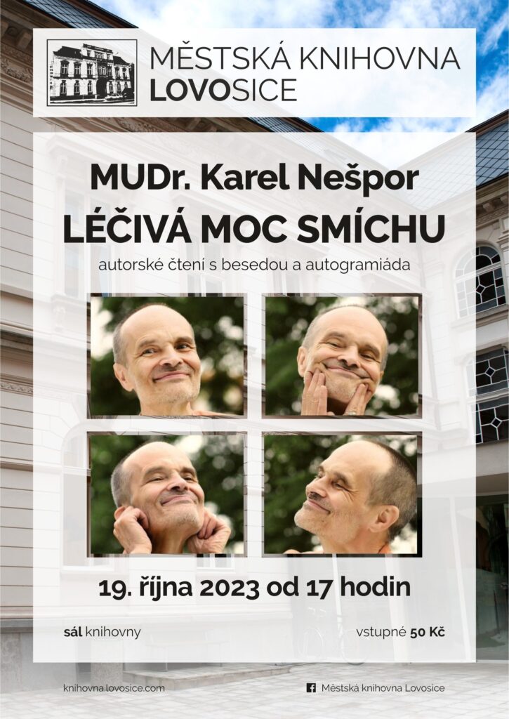 Lovosice – Městská knihovna Lovosice přivítá ve čtvrtek 19. října vzácného hosta. Pozvání na besedu totiž přijal Karel Nešpor – psychiatr, odborník na léčbu závislostí a známý propagátor smíchu, který napsal desítky knih.