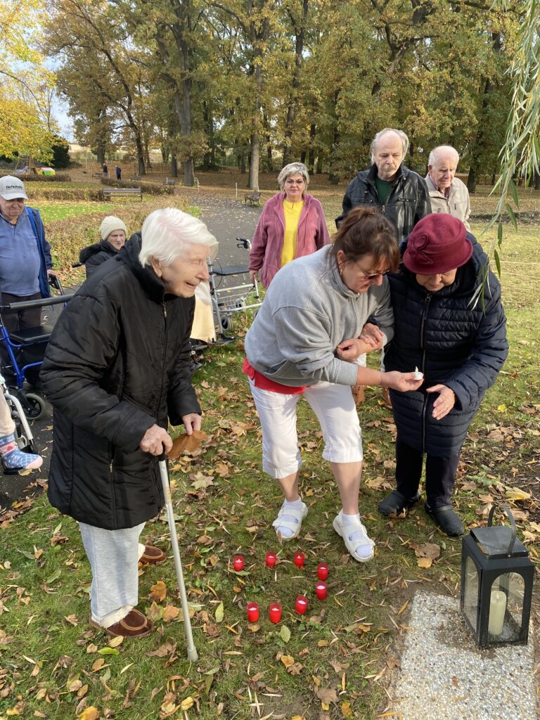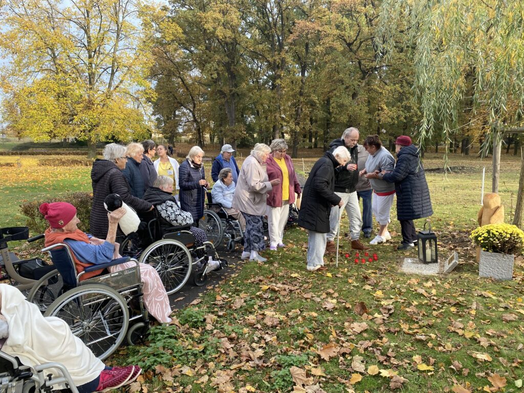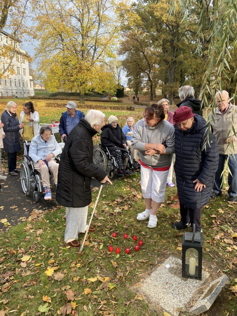 Odpoledne pak klienti SeniorCentra zavzpomínali na své zemřelé blízké u pietního místa. To se nachází přímo v areálu zařízení – konkrétně v přilehlém parku.