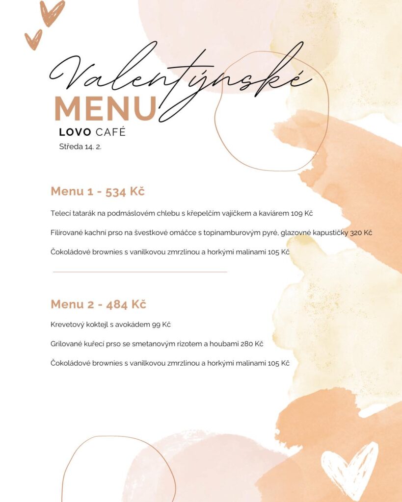 Lovosice – Kavárna v přízemí Centra kultury Lovoš v Lovosicích ve středu 14. února pohostí Vás i Vaši lásku. Oblíbené „valentýnské menu“ je totiž zpět a ani tentokrát nezklame. Od 17 hodin se bude v LOVO Café podávat tříchodová večeře za zvýhodněnou cenu. Vybírat můžete ze dvou menu.