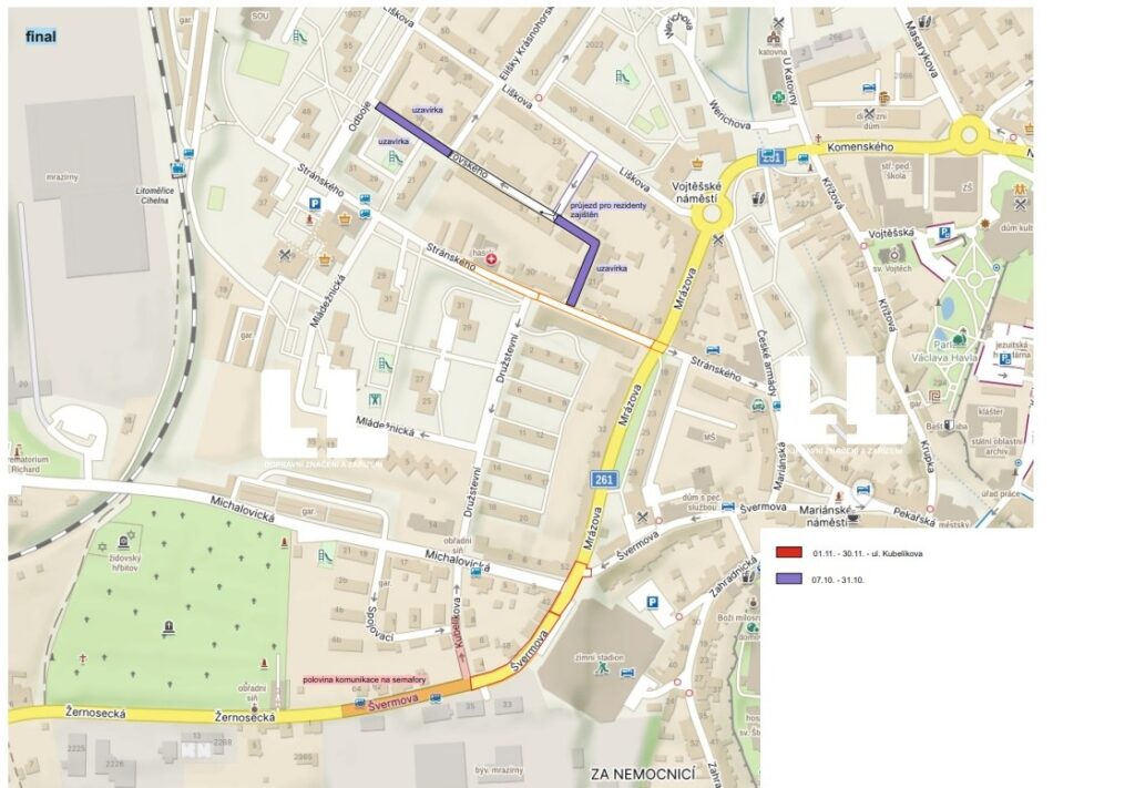 Litoměřice – Otevřené výkopy, dopravní uzavírky i dočasně neprůjezdná Mrázova ulice bez možnosti napojení na most Generála Chábery. Litoměřice se musejí připravit na dopravně náročné období.