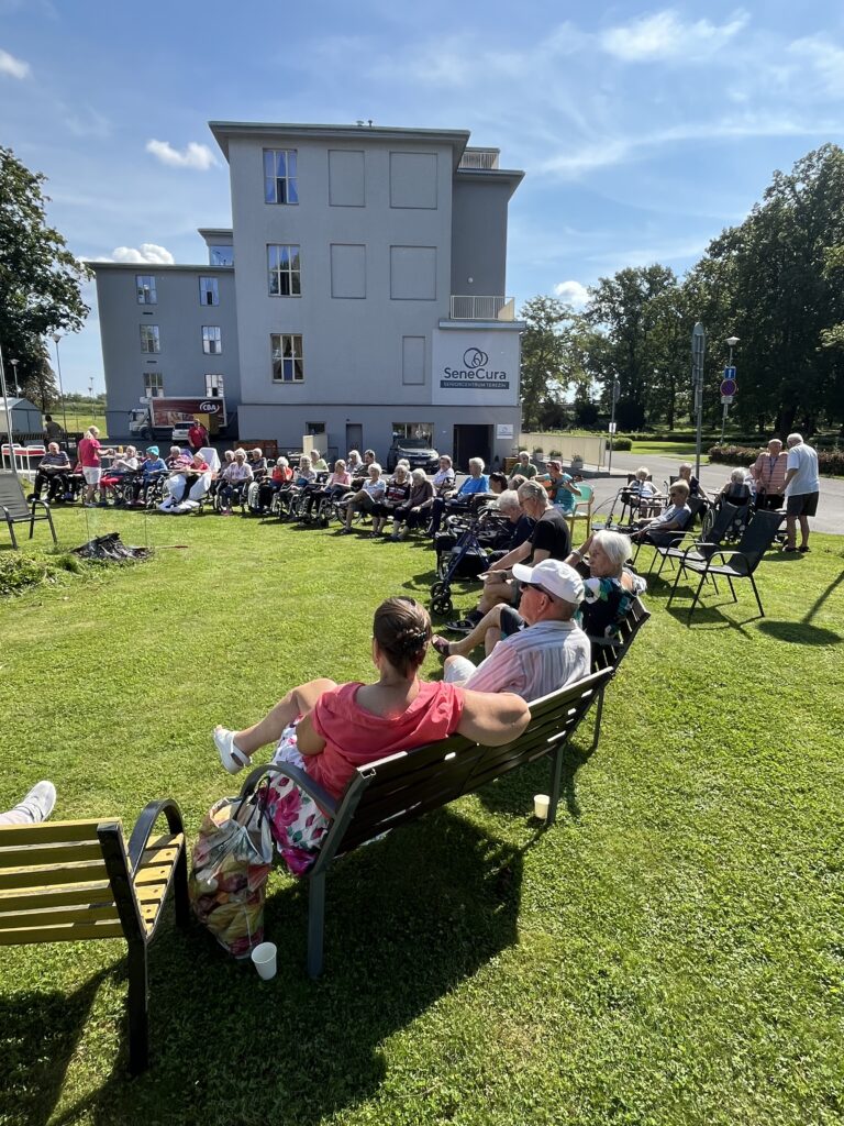 Terezín – Slunečné letní počasí si klienti SeniorCentra SeneCura v Terezíně užívají naplno. Přímo v areálu zařízení, ve zdejším překrásném lesoparku, si ve velmi družné a přátelské atmosféře před několika dny opekli špekáčky.