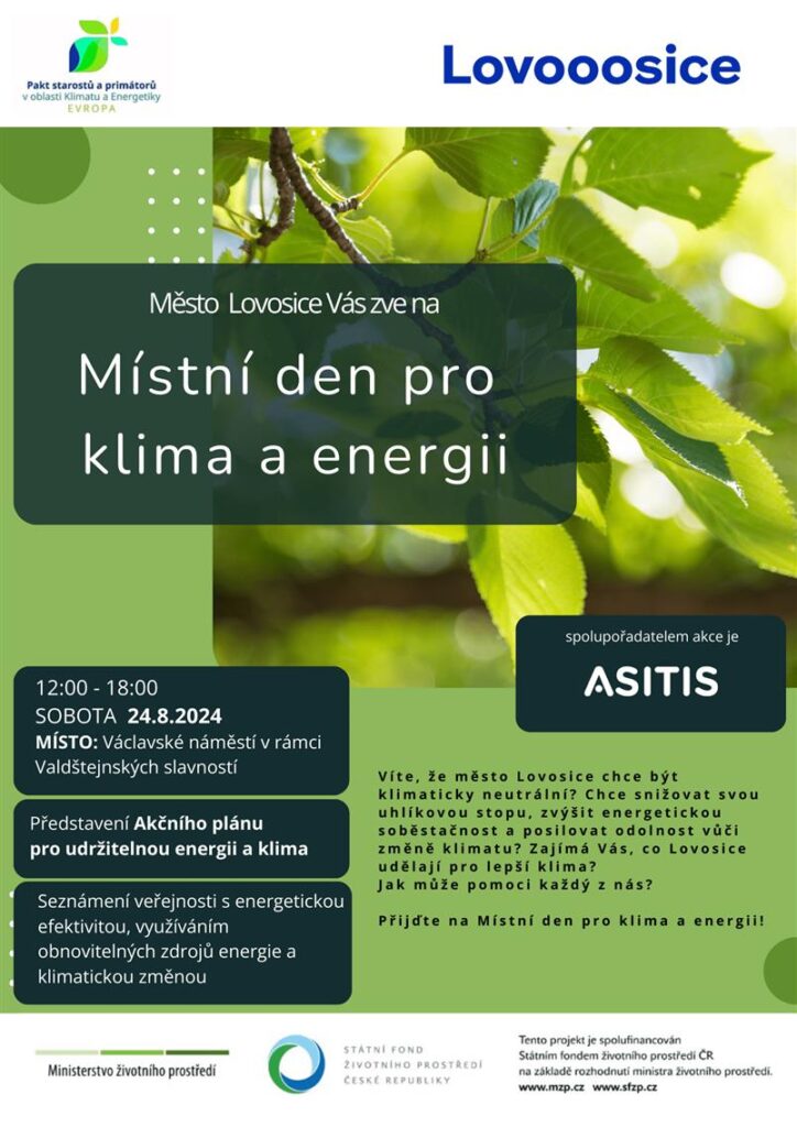 Lovosice – Víte, že město Lovosice chce být klimaticky neutrální? Chce snižovat svoji uhlíkovou stopu a zvýšit energetickou soběstačnost. Co přesně pro to dělá (a bude dělat) se dozvíte v sobotu 24. srpna od 12 hodin na lovosickém Václavském náměstí.