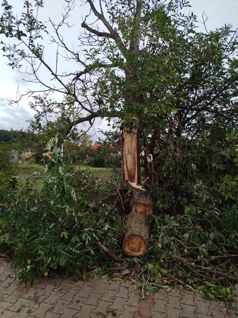 Litoměřice – Hasiči a Městská policie Litoměřice dnes řešili (kromě jiného) také padající strom na parkovišti u nemocnice. Strom poškodil zde zaparkovaná vozidla.