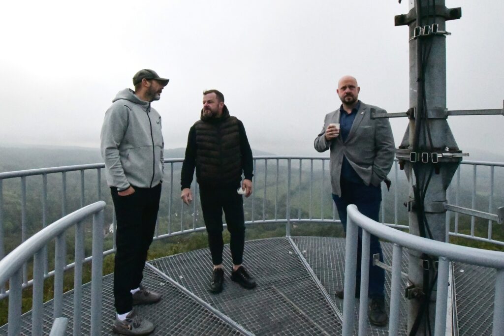 Litoměřicko – Práce na renovaci ocelové části rozhledny na vrchu Varhošť nedaleko Litoměřic jsou po několika týdnech hotové. Jak za zhotovitelskou firmu popsal David Bader, obnášely práce abrazivní tryskání celé konstrukce, demontáž ocelových roštů a jejich opětovné upevnění. „Následně jsme provedli základní a vrchní nátěry,“ doplnil David Bader.