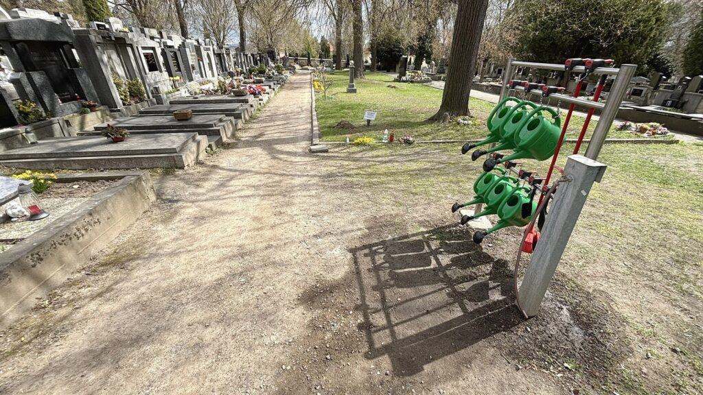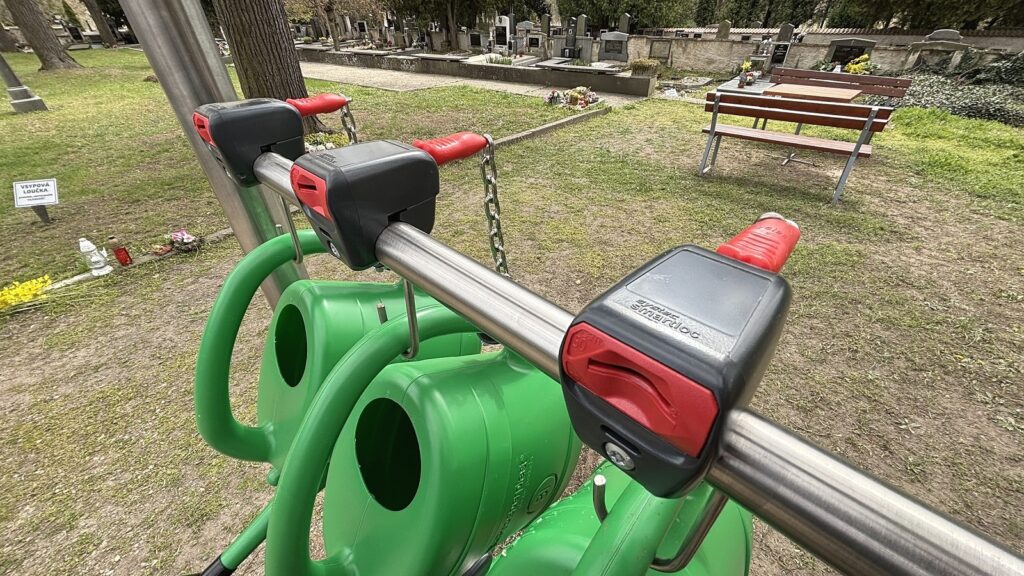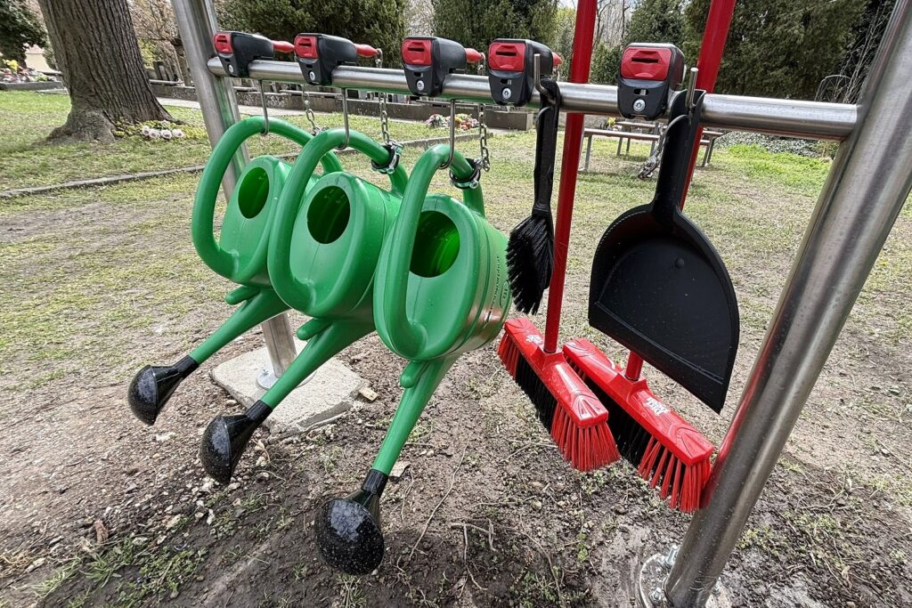 Litoměřice – Město Litoměřice přináší novinku pro všechny návštěvníky hřbitova. Pracovníci Technických služeb města nainstalovali v areálu tři speciální stojany s nářadím a konvemi, které jsou k dispozici pro údržbu hrobů.