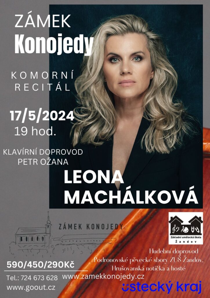 Už v pátek 17. 5. 2024 od 19h se na zámku Konojedy v kostele Nanebevzetí Panny Marie uskuteční komorní recitál Leony Machálková. Známou zpěvačku doprovodí na klavír Petr Ožana. Večerem zazní nejkrásnější písně ze světových i českých muzikálů.