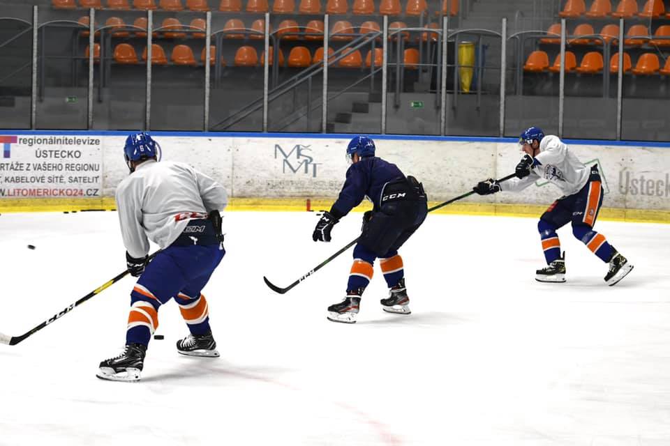 Hráči Litoměřic se začali připravovat i přesto, že na zimním stadionu v tomto týdnu probíhá kemp reprezentační dvacítky. Obě mužstva tak musí plnit přísná bezpečnostní opatření, aby spolu hráči vůbec nepřišli do kontaktu.