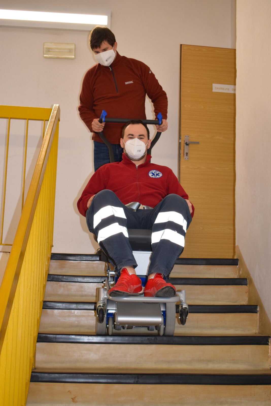 „ V současných podmínkách je nutné tyto osoby ze schodů snášet ve dvou, s použitím schodolezu to zastane řidič sám,“ vysvětlil dispečer dopravní zdravotní služby Luboš Mlejnecký s upřesněním, že nový schodolez je schopen přepravovat pacienty s tělesnou hmotností max. do 140 kg. Schodolez pracuje v režimu tří rychlostí pohybu, a to od 10 do 18 překonaných schodů za minutu. „Dojezd pro jedno nabití je závislý na hmotnosti přepravované osoby a na tom, zda se jede nahoru nebo dolů. Průměrný dojezd je přibližně 400 schodů,“ doplnil dispečer.