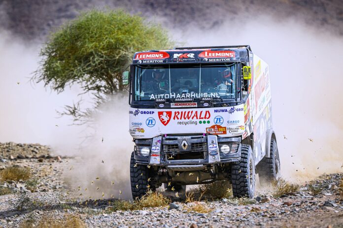 Yanbu/Židovice – Roudnický mechanik Daniel Kozlovský a holandský pilot Martin van den Brink míří s židovickým renaultem za svým nejlepším dakarským výsledkem. Přestože situace jim ke zlepšení příliš nenahrává, posádka si stav hlídá a podobně je na tom i druhý kamion od MKR Technology s Pascalem de Baarem. Do vytouženého cíle přitom zbývá už jen jediná etapa.