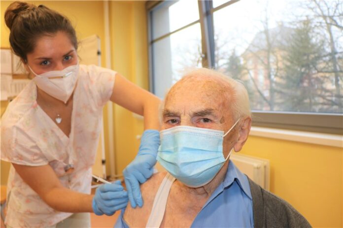 Ústí nad Labem – V očkovacím centru v ústecké Masarykově nemocnici se už proti koronaviru nechal očkovat také stoletý občan města, Alois Randous. Před očkováním prošel lékařskou prohlídkou.