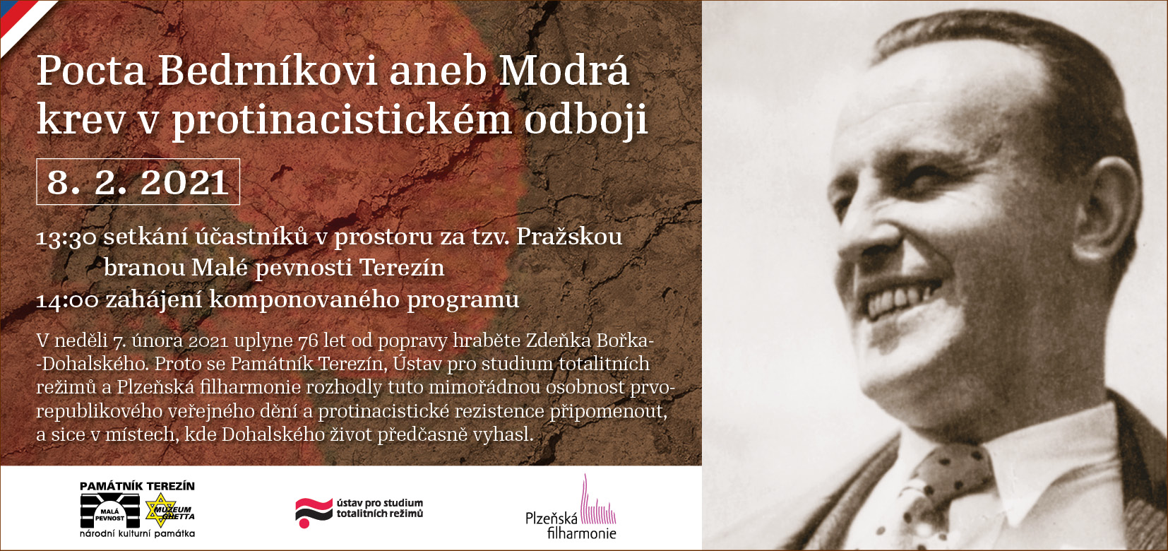 Terezín – Památník Terezín, Ústav pro studium totalitních režimů a Plzeňská filharmonie pořádají dnes 8. února ve 14 hodin komponovaný pořad s názvem „Pocta Bedrníkovi aneb Modrá krev v protinacistickém odboji.“ Vzhledem k aktuální epidemiologické situaci a k nařízením vlády musí vzpomínkové setkání proběhnout bez účasti veřejnosti. O akci ale nepřijdete, protože bude probíhat přímý přenos.