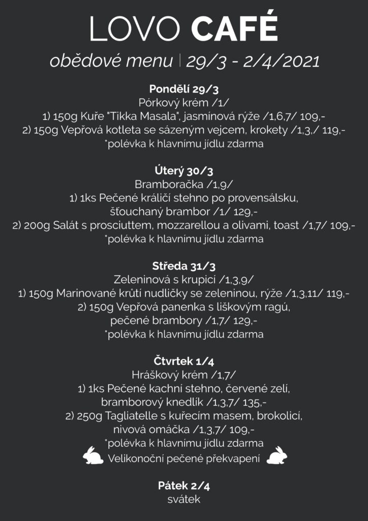 Lovosice – Velikonoce slaví i kavárna v přízemí Centra kultury Lovoš v Lovosicích. Pokud si ve čtvrtek 1. dubna vyberete z jídelního lístku, dostanete ke své objednávce také dezert zdarma – velikonoční pečené překvapení. Oběd Vám navíc přivezou až domů – po Lovosicích a okolí bez příplatku.