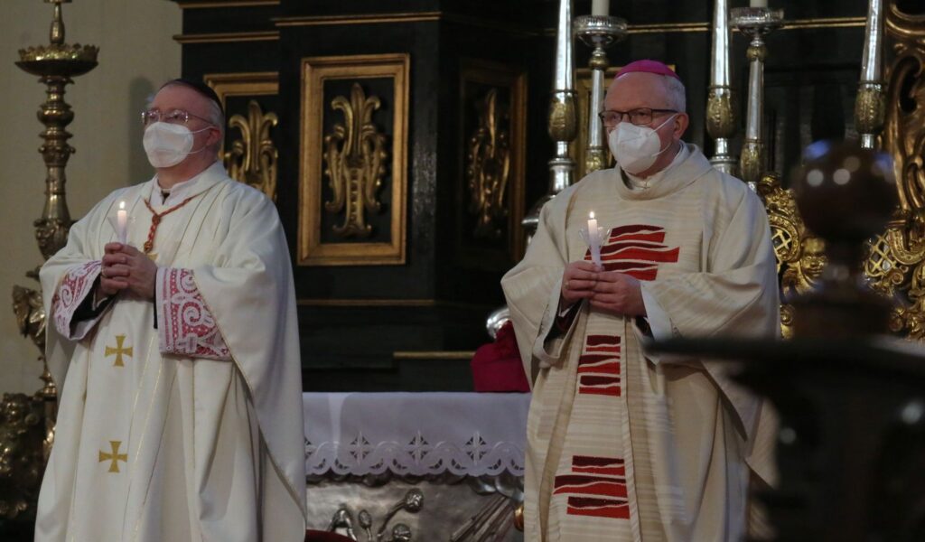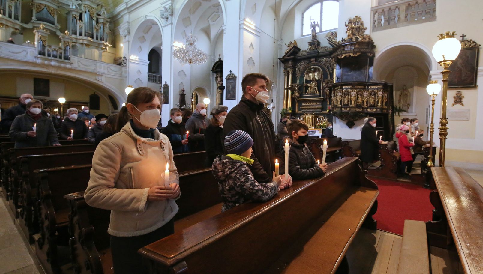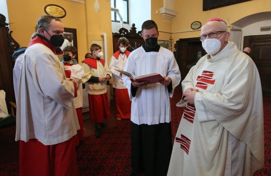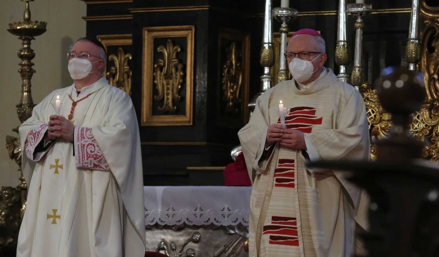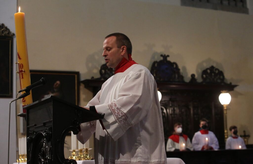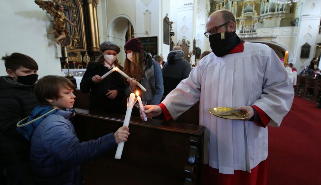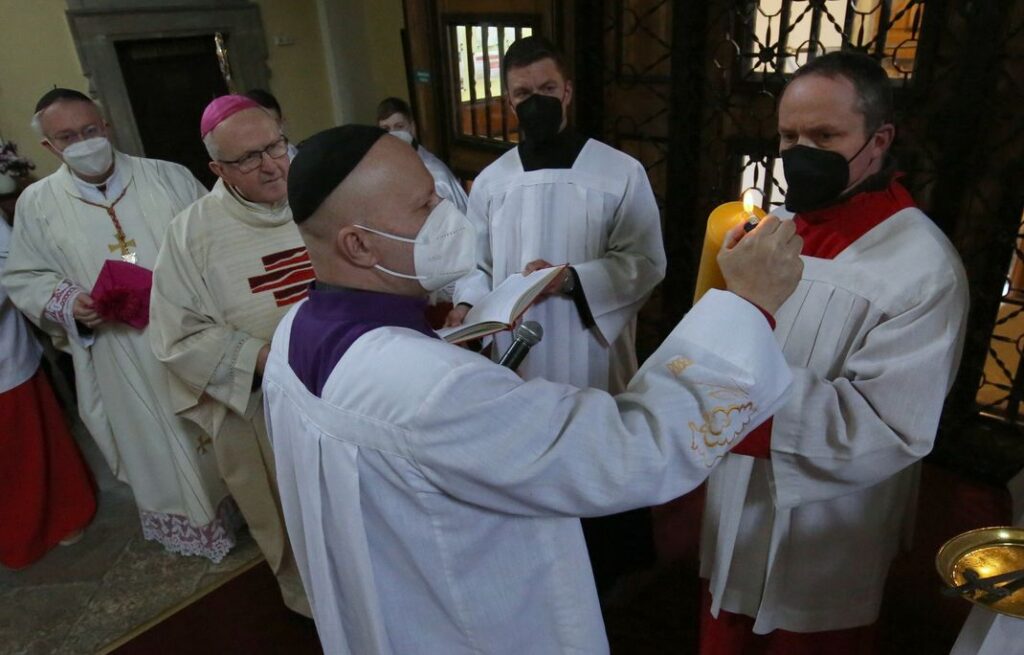 LITOMĚŘICE – V katedrále sv. Štěpána v Litoměřicích se na Bílou sobotu 3. dubna večer konaly obřady velikonoční vigilie – bohoslužba světla, slova, vody a oběti. Předsedal jim litoměřický biskup Jan Baxant. Letošní obřady jsou jiné než předešlé roky. Z důvodu koronaviru a vládních nařízení se letos slavnostní obřady Veliké noci, od které mají Velikonoce svůj název, začaly požehnáním ohně v katedrále, od něhož byla poté zapálena velikonoční svíce – paškál. Od jeho plamene si věřící rozžali svoje svíce. Zazněl velikonoční chvalozpěv k posvěcení paškálu zvaný Exsultet, kterým začala bohoslužba slova. Během ní věřící vyslechli devět biblických úryvků.