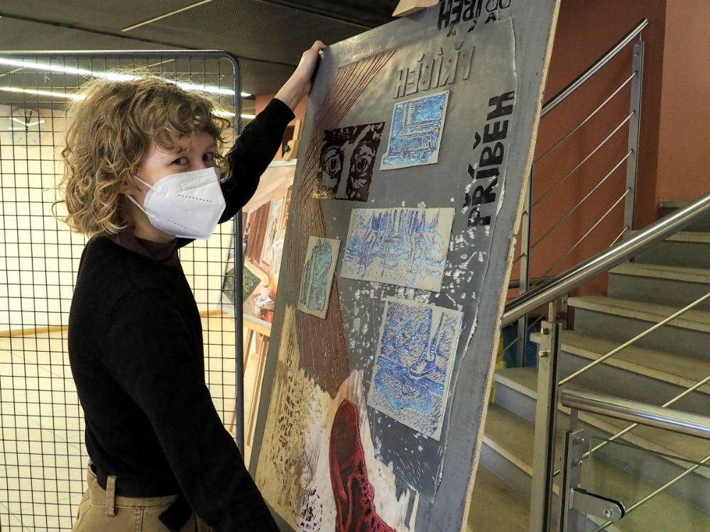 Expozice je opravdu velmi pestrá, jak na použité techniky a materiály, tak i s ohledem na věk vystavujících. Zahrnuje více než osm desítek maleb, kreseb, grafiky, ale i prostorových objektů (keramiky, dřeva, papíru) prezentovaných kvůli omezenému prostoru prostřednictvím bannerů a fotografií. Práce vznikly v loňském i letošním roce, některé dokonce i přímo online. Příkladem jsou třeba Hlavy, které na velkých plátnech namalovala doma Anna Kaiserová – žákyně ZUŠ 11.rokem. Tematicky vycházejí z Čapkova R.U.R. a konfrontují dokonalost robota a nedokonalost člověka.
