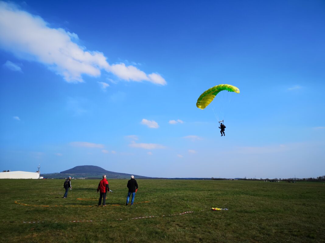 „Lítáme do 1200 metrů, tam vyskočíme ven, pět až sedm vteřin padáme volným pádem, pak se otevře padák a začínáme si dělat rozpočet na přistání, aby nám to vyšlo podle toho, jak fouká vítr. Snažíme se trefit do toho středového kola, což je nejvíc bodů,“ popsal v krátkosti základní pravidla ředitel soutěže František Suchý, který se závodů také účastnil.