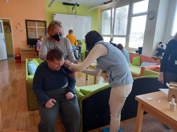 Litoměřice – V Denním stacionáři pro osoby s mentálním a kombinovaným postižením, který provozuje litoměřické Centrum Srdíčko, proběhlo v závěru dubna očkování klientů proti koronaviru. Do stacionáře za tímto účelem dorazil očkovací tým z litoměřické nemocnice.