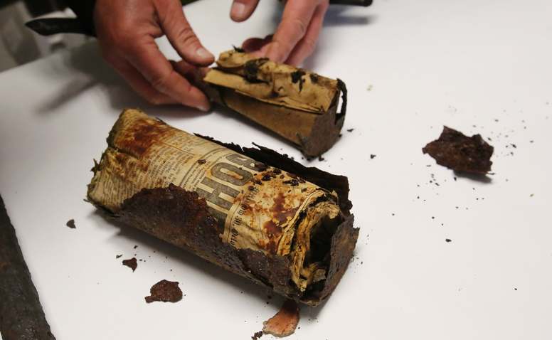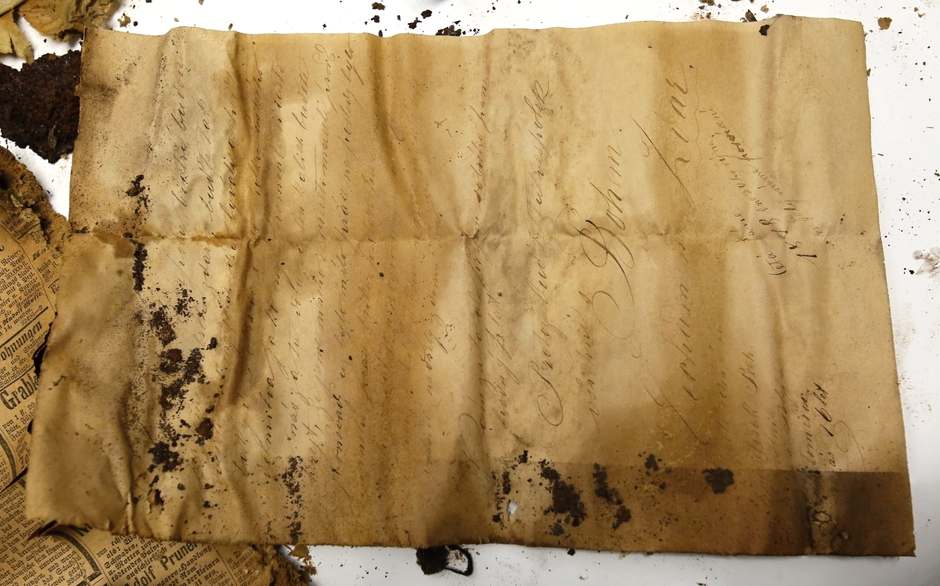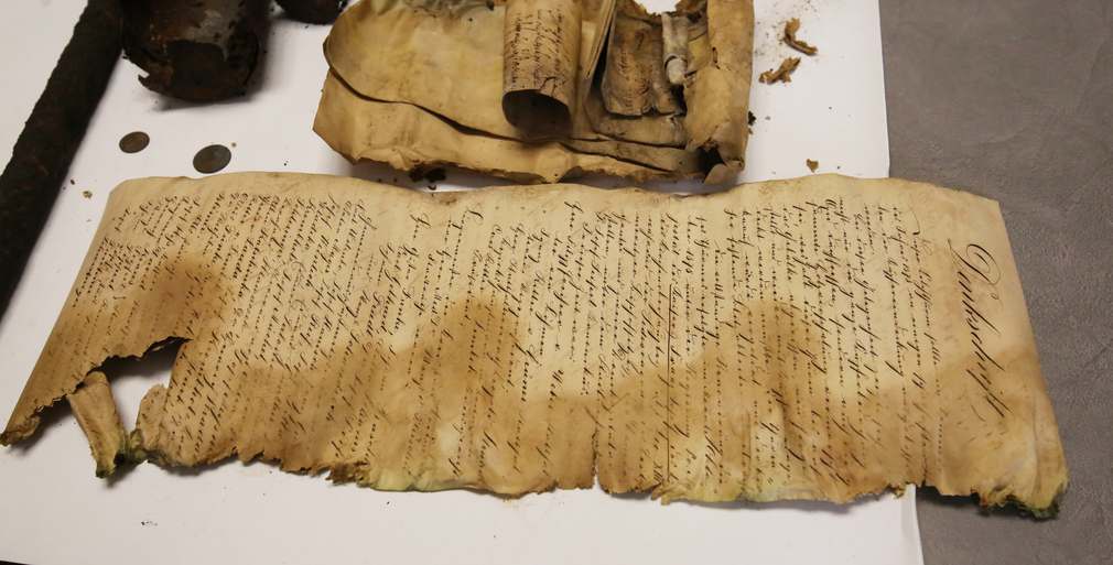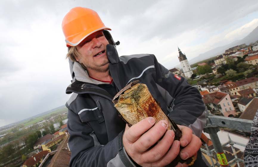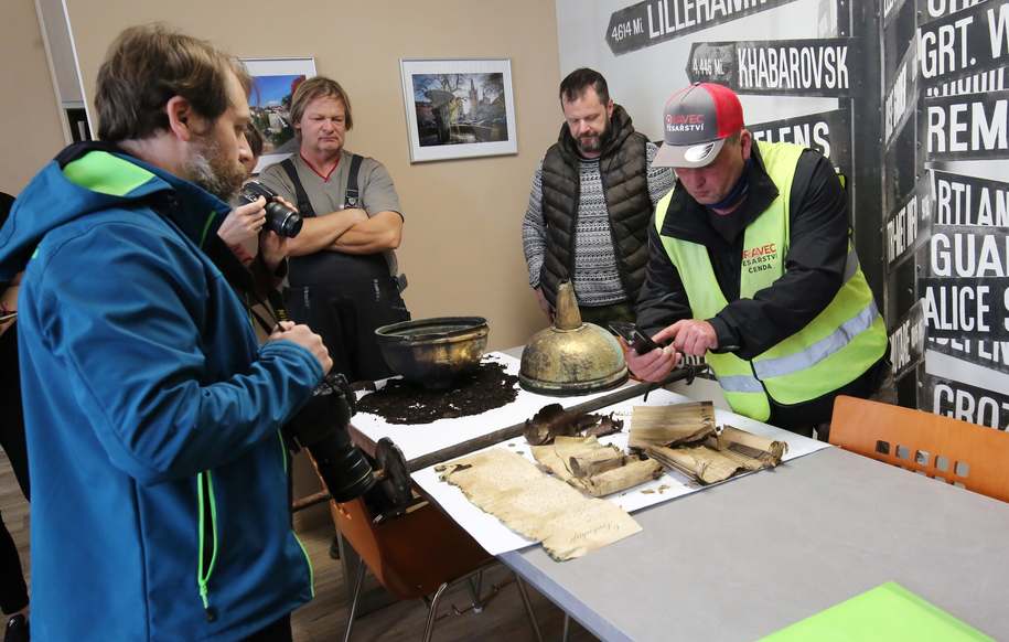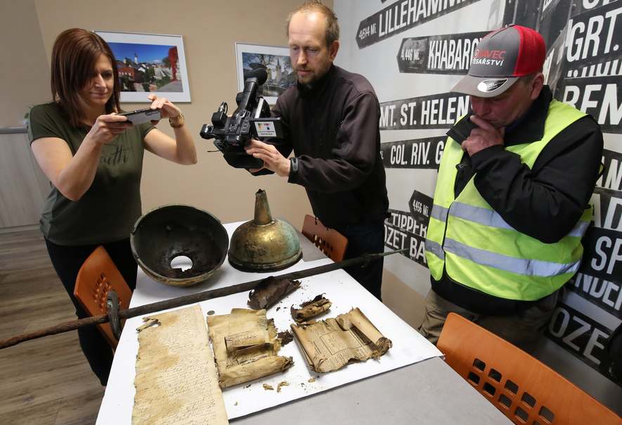 LITOMĚŘICE: Objektivem Karla Pecha se můžete poprvé exkluzivně na Litoměřicku24 podívat na vzácný nález, který byl učiněn při rekonstrukci věže Kalich. Dech dějin zavanul na všechny přihlížející, kteří objevili schránku se vzkazem budoucím generacím z roku 1878. Obsáhlou videoreportáž vám Litoměřicko24 přinese z kraje příštího týdne.