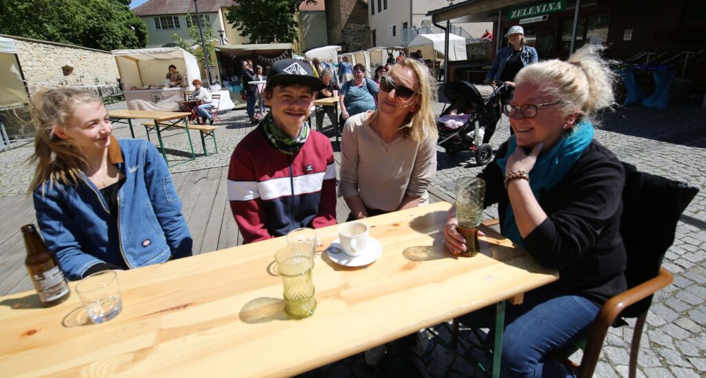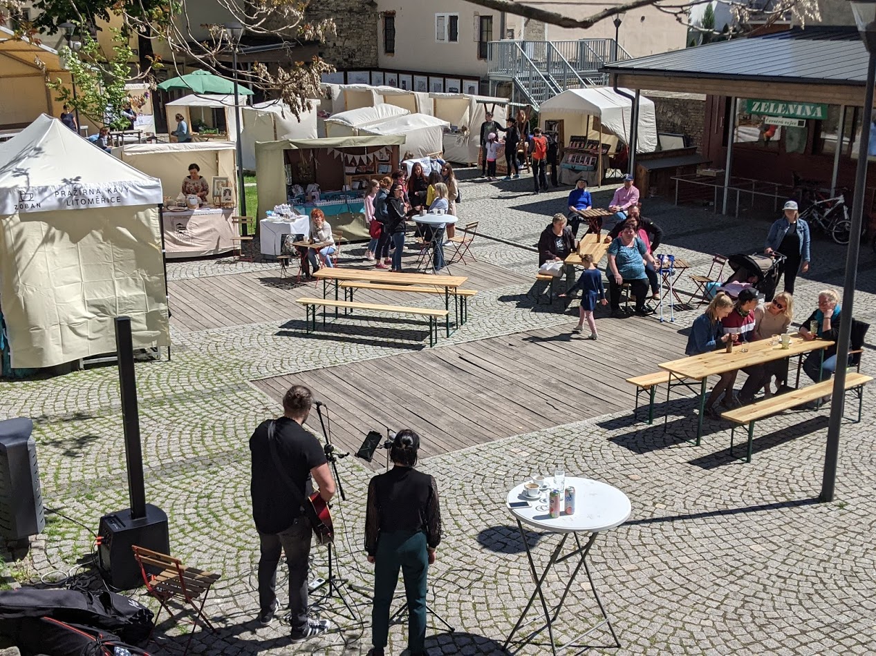 LITOMĚŘICE – Tržnice Felixe Holzmanna letos poprvé ožila jarmarkem. Oblíbené prodejní, společenské akce sem přesunula kavárna FérKafe z parku Václava Havla. V dopoledních hodinách zahráli pro děti Sváťa s Alenkou pohádku O perníkové chaloupce a odpoledne návštěvníky potěšili svým zpěvem Pavel Houfek a Eliška Jirsová.