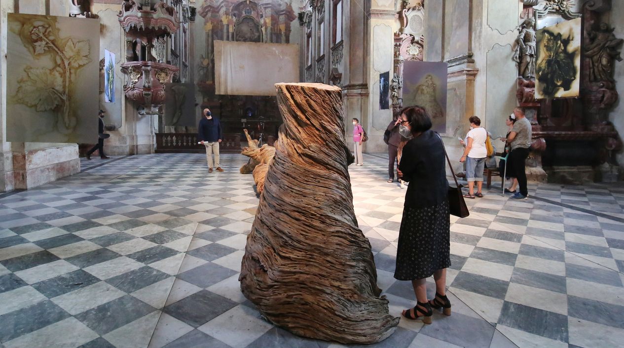 LITOMĚŘICE – Karel Pech tentokrát navštívil výstavu Zjevení přírody. Jedná se o multimediální, převážně výtvarný projekt Andere Seite studia – dvojice litoměřických tvůrců Radka a Zdeňka Květoňových. Severočeská galerie výtvarného umění v Litoměřicích ji umístila do hlavní lodi odsvěceného barokního kostela Zvěstování Panny Marie, a její součástí se tak stalo také blízké a vzdálené okolí budovy, rozmanitě rezonující uvnitř chrámového prostoru.