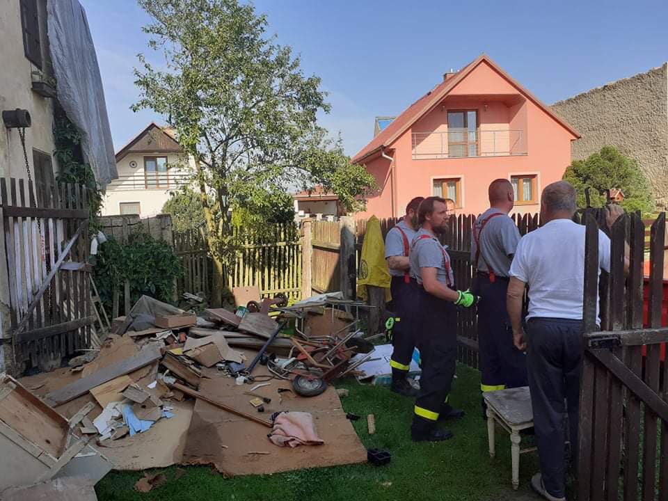 Žernosečtí hasiči ve Stebně v neděli pomáhali s odklízením následků bouře – tedy hlavně všudypřítomných trosek.