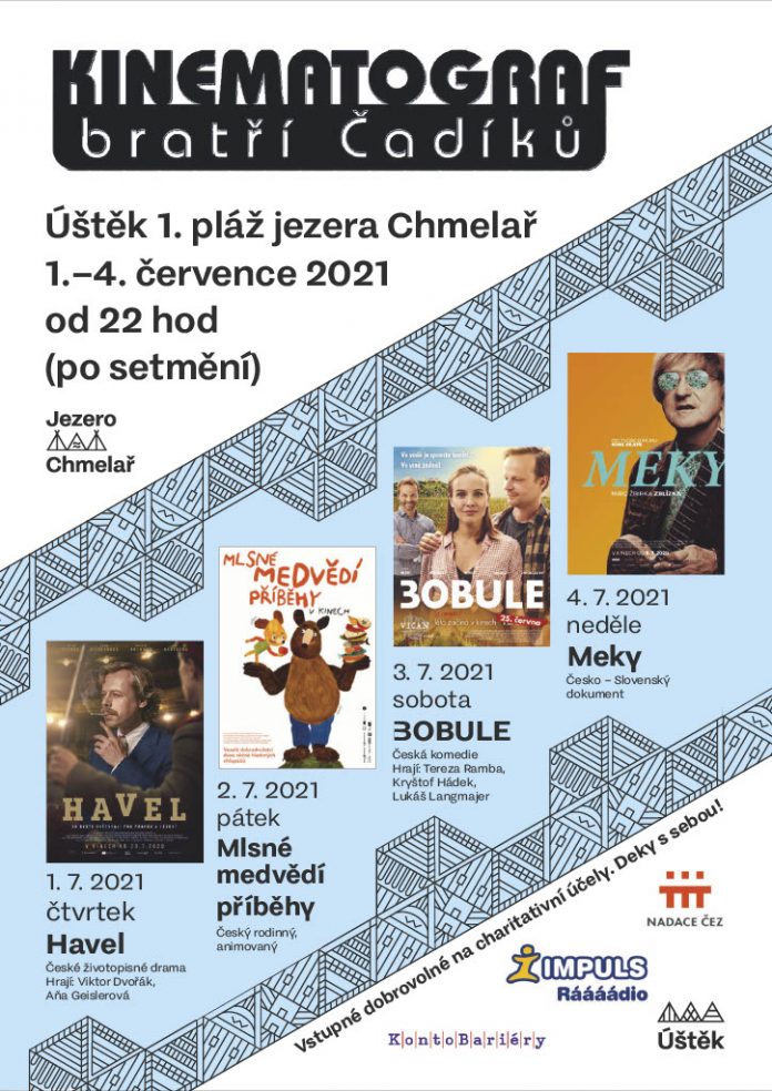 ÚŠTĚK – Dnes (4.7.) zahraje naposledy na pláži v Úštěku Kinematograf bratří Čadíků. Posledním představením bude film Šimona Šafránka Meky, který představuje populárního zpěváka a skladatele z těsné blízkosti, zcela otevřeně a upřímně a v nečekaných souvislostech i s humorem. Projekce začne po setmění – kolem 22. hodiny.
