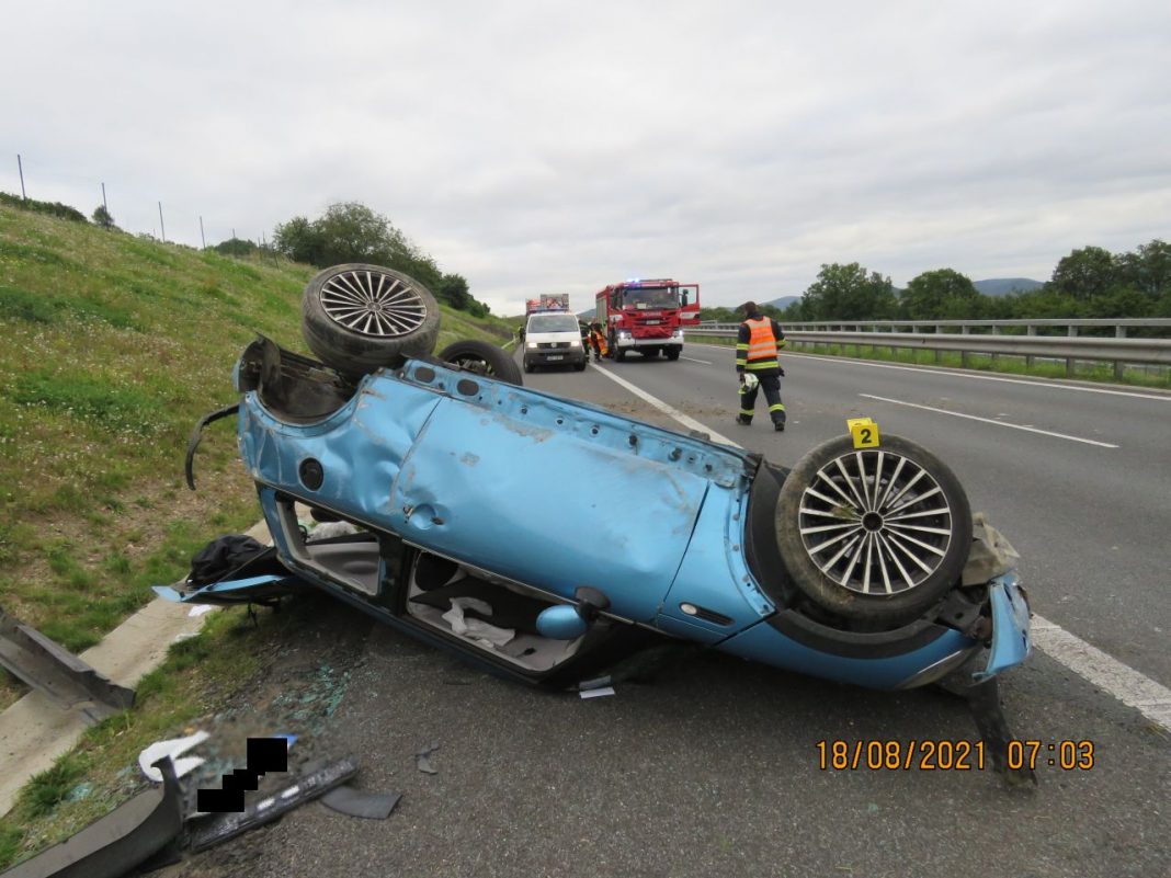 Žádáme občany o pomoc při objasnění okolností dopravní nehody, ke které došlo ve středu 18. srpna 2021 kolem 6:55 hodin na dálnici D8 (km 56,4) ve směru ze SRN na Prahu v místě po projetí tunelů Radejčín – Prackovice. Z dosud nezjištěné příčiny došlo k havárii osobního vozidla Mini Cooper, v důsledku nehody došlo ke zranění dvoučlenné osádky auta. V době nehody měla místem projíždět jízdní souprava složená z tahače a návěsu s plachtou.