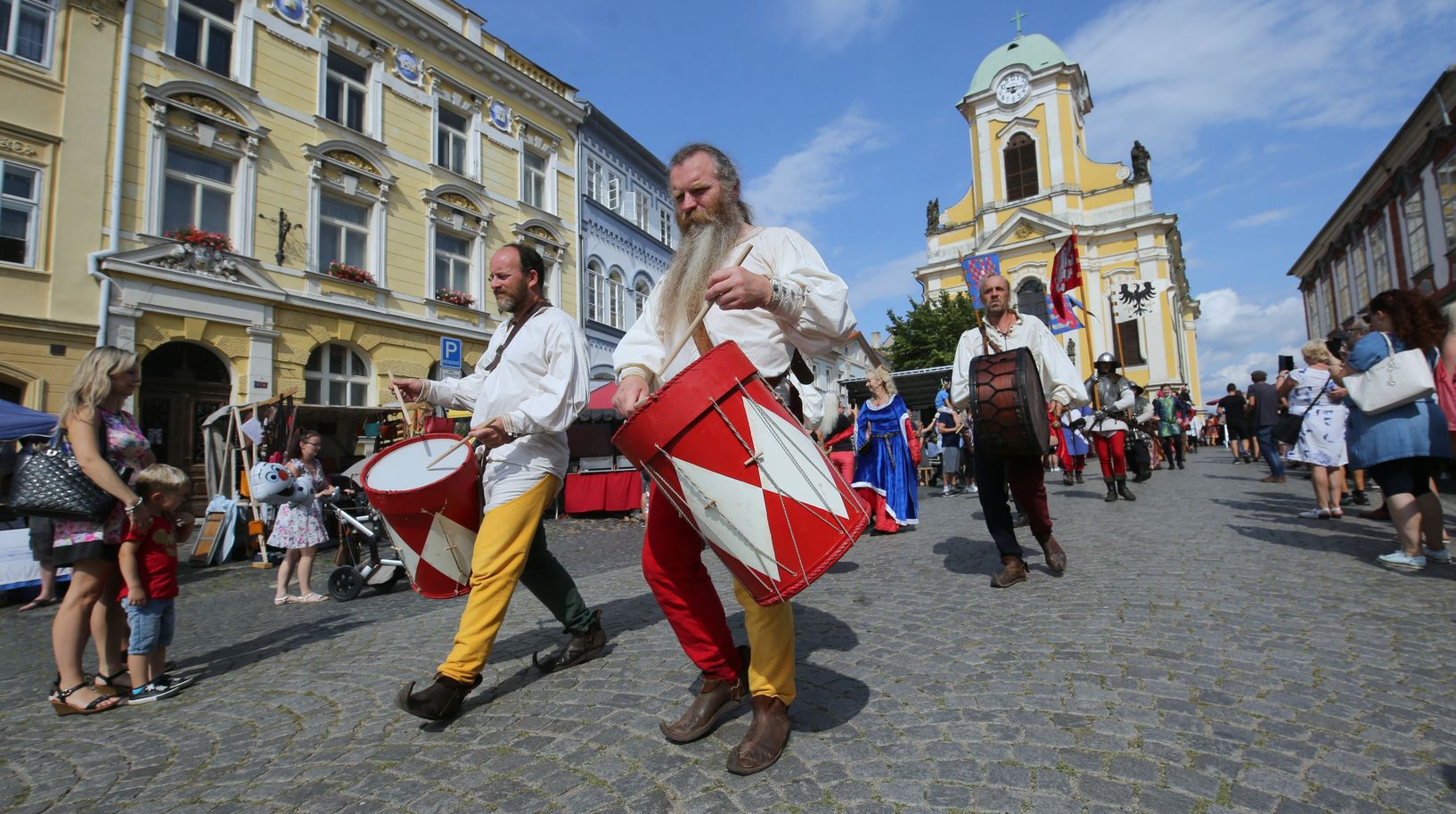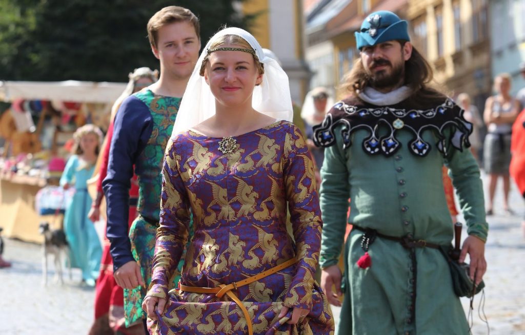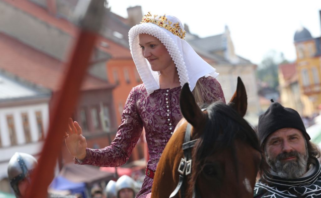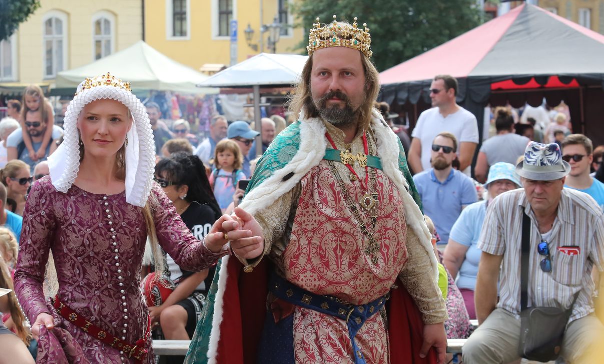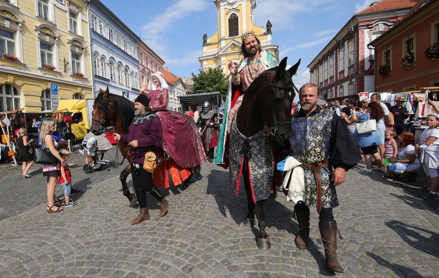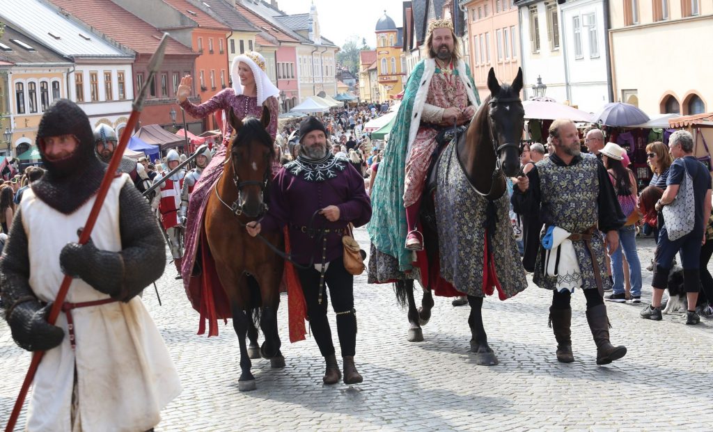 ÚŠTĚK – Císař a král Karel IV. s chotí a jeho početná družina zavítali v sobotu do Úštěka. Dobové tržiště s více než stopadesátkou řemeslníků nabízejících keramiku, šperky, textil a také spousty dobrot, celodenní program na historické, dětské i loutkové scéně. Nejen to nabídl návštěvníkům 23. ročník Historického jarmarku na Mírovém náměstí v Úštěku. Sám král a císař Karel IV. se osobně přesvědčil, jak dobře se daří vinné révě pod místním hradem a poté se vydal s družinou na pochod městem.