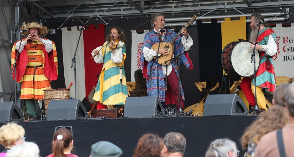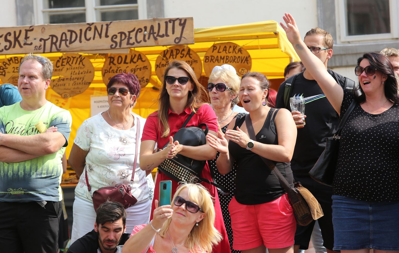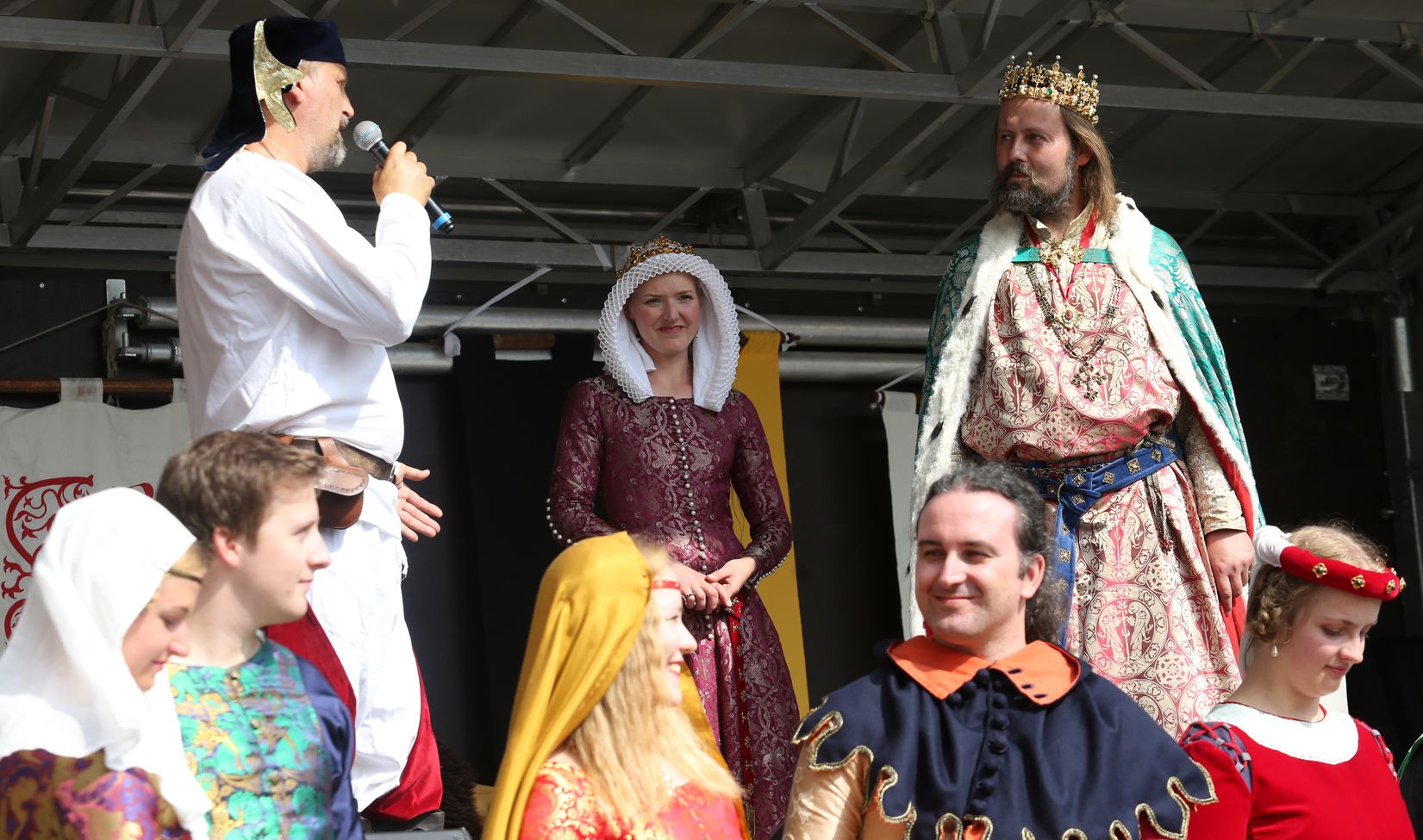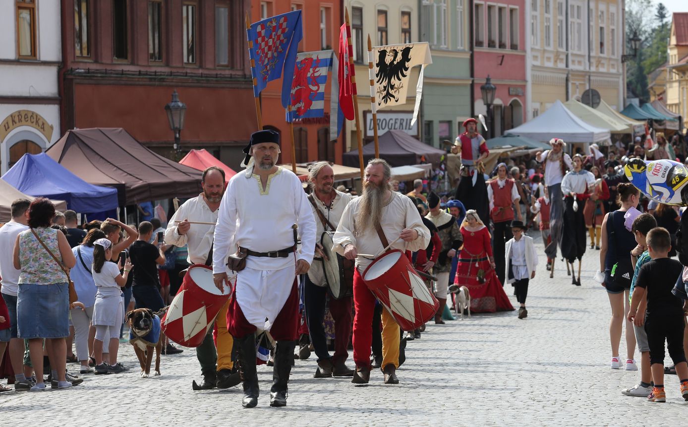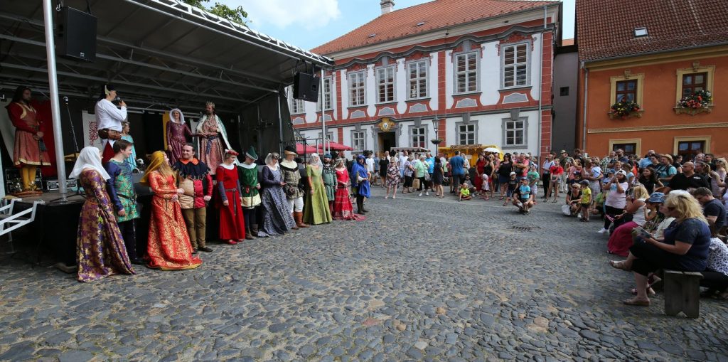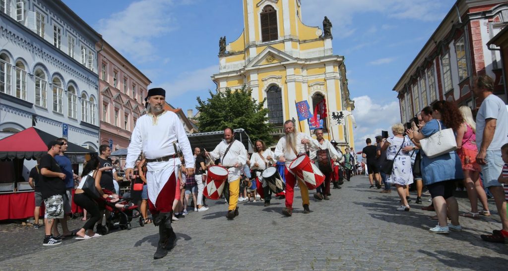 ÚŠTĚK – Císař a král Karel IV. s chotí a jeho početná družina zavítali v sobotu do Úštěka. Dobové tržiště s více než stopadesátkou řemeslníků nabízejících keramiku, šperky, textil a také spousty dobrot, celodenní program na historické, dětské i loutkové scéně. Nejen to nabídl návštěvníkům 23. ročník Historického jarmarku na Mírovém náměstí v Úštěku. Sám král a císař Karel IV. se osobně přesvědčil, jak dobře se daří vinné révě pod místním hradem a poté se vydal s družinou na pochod městem.