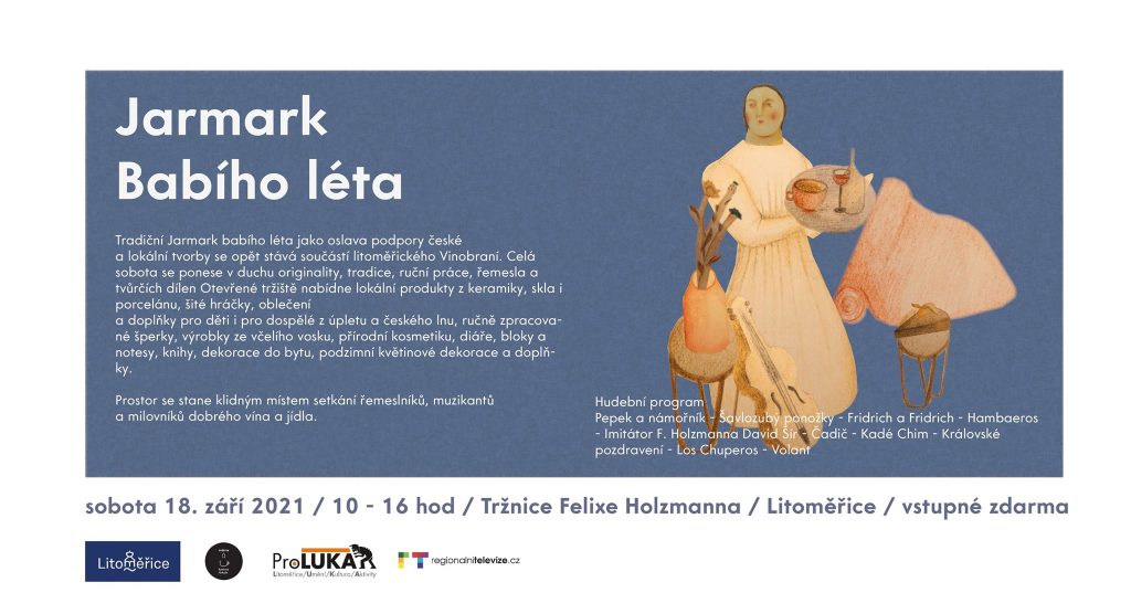 Litoměřice – Už tuto sobotu 18. září přijďte na Tržnici Felixe Holzmanna na Jarmark babího léta! Oslava lokální produkce a šikovných lidí z regionu bude probíhat od 10 do 16 hodin a nabídne spoustu krásného zboží a dobrého vína.