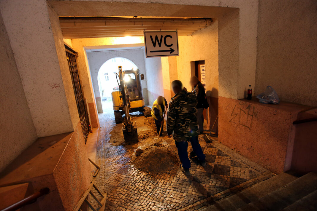 Práce proto byly na nezbytně nutnou dobu zastaveny, lokalita je nadále neprůchozí a veřejné toalety nepřístupné nejméně do poloviny příštího týdne. Do Riegrovy je tak třeba dočasně chodit ulicemi Nerudova a Řipská. Hygienické zázemí veřejnosti nabízí Informační a dopravní centrum Podřipska na Karlově náměstí.