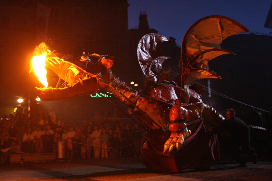Vystoupí Divadlo KVELB. Uvidíte souboj draka s rytířem a obří čertí vůz.