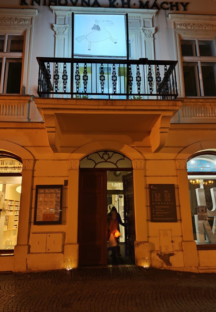 Na závěr čekalo všechny přítomné překvapení v podobě relaxace v zasněžené krajině a poslechu svatomartinské legendy. Na dění na náměstí dohlížel animovaný kůň svatého Martina, řehtající na balkoně knihovny.