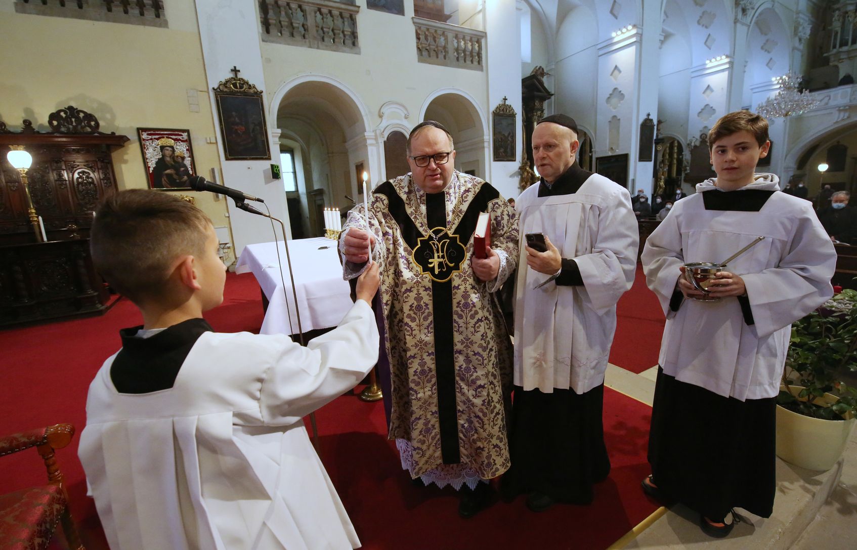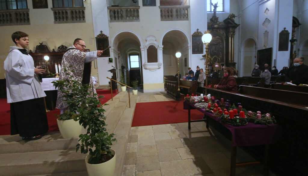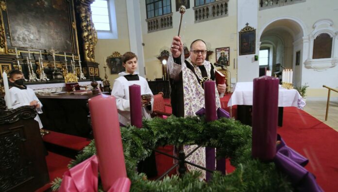 LITOMĚŘICE – Advent je opět po roce tady. V katedrále sv. Štěpána v Litoměřicích byla v neděli dopoledne zažehnuta první svíce na adventním věnci. Probošt Litoměřické kapituly Jiří Hladík požehnal adventní věnec, ale i věnce, které si věřící přinesli sebou. Bohoslužby se zúčastnilo několik desítek věřících.