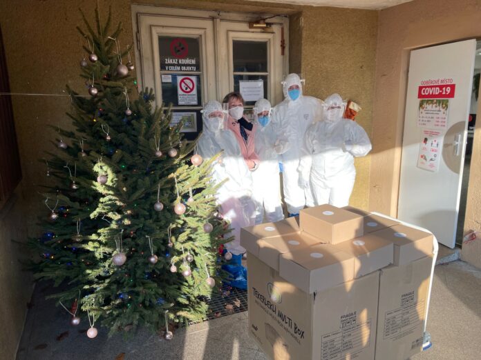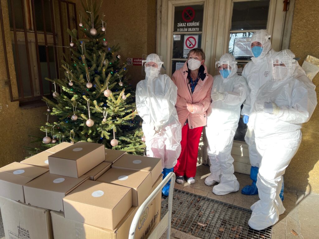 První stovku balíčků obdrželi zdravotníci Covid odběrového místa a sestřičky i lékaři na dětském interním a chirurgickém příjmu Masarykovy nemocnice v Ústí nad Labem již před vánočními svátky. Další budou následovat během ledna do všech nemocnic Krajské zdravotní, a.s. (nemocnice v Děčíně, Ústí, Teplicích, Mostě, Chomutově, Litoměřicích a Rumburku) a do tří nemocnic Krajské nemocnice Liberec, a.s. (nemocnice v Liberci, Turnově a Frýdlantu).