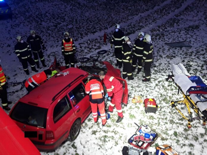 ZIMOŘ – Čtyři jednotky vyjely v 7:18 k dopravní nehodě osobního auta a vlaku u obce Zimoř, okres Litoměřice. Při nehodě byl zraněn řidič osobního vozu. Ve vlaku cestovalo 40 osob, nikdo z nich zraněn nebyl. Hasiči ve spolupráci se Zdravotnickou záchrannou službou zraněného vyprostili a naložili do sanitky.