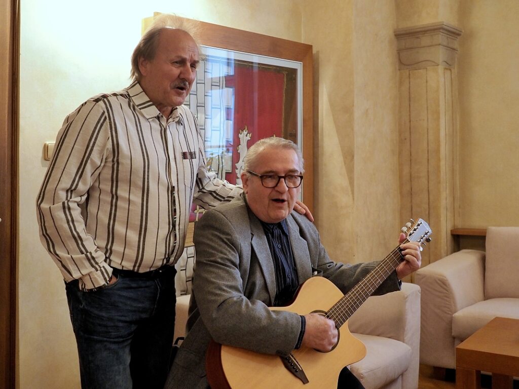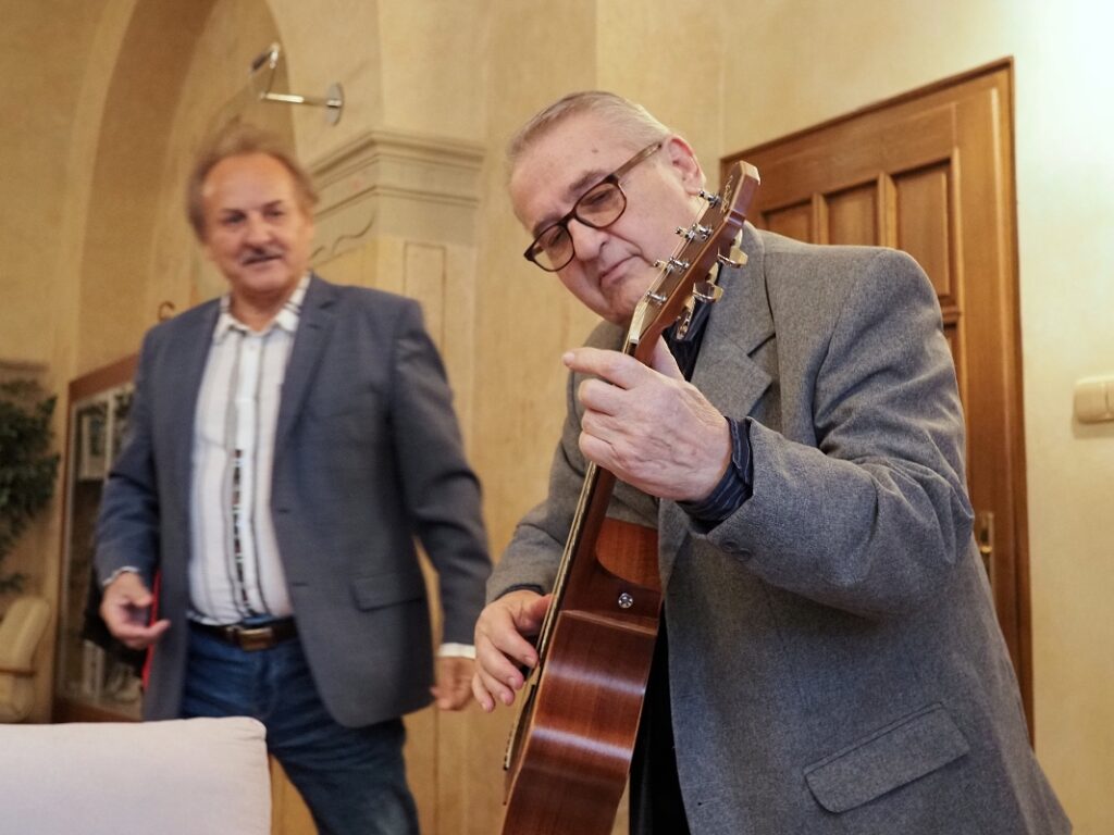 Litoměřice – „Péče lékařů, a hlavně muzika a setkávání s přáteli mě vrátily zpátky do života. Byla to pro mě nejlepší terapie,“ říká známý litoměřický kytarista a kapelník Áda Škarda, který se v těchto dnech dožívá 80 let. U této příležitosti jej v úterý na radnici přivítal a poblahopřál mu litoměřický starosta a senátor Ladislav Chlupáč. A jaká by to byla oslava, kdyby při ní na radnici nezněla Ádova kytara!