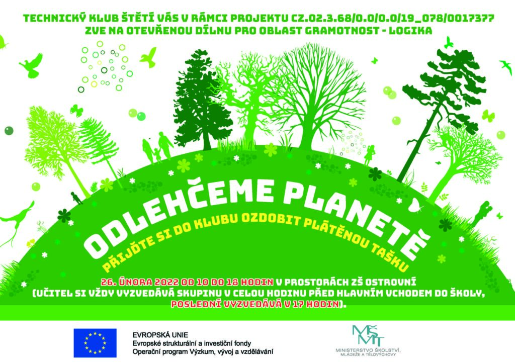 Štětí – Technický klub ve Štětí pokračuje ve svou činností i v novém roce a zve všechny rodiče a děti z široké veřejnosti na otevřenou dílnu v rámci projektu CZ.02.3.68/0.0/0.0/19_078/0017377 pro oblast gramotnost a logika, tentokrát na téma Odlehčeme planetě.