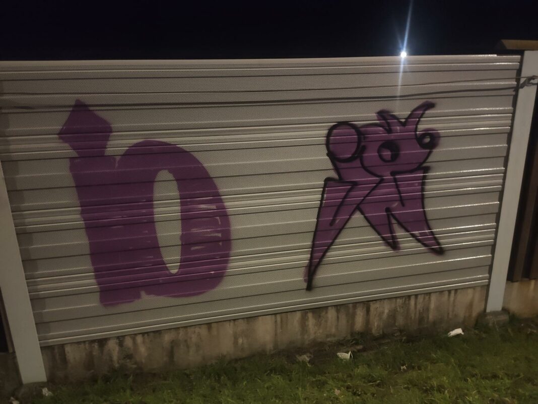 Nyní policisté evidují další případ sprejerství. Tentokrát pátrají po neznámém pachateli, který vytvořil fialovou a černou barvou obrazce na protihlukové stěně v blízkosti nádraží u obce Záluží.