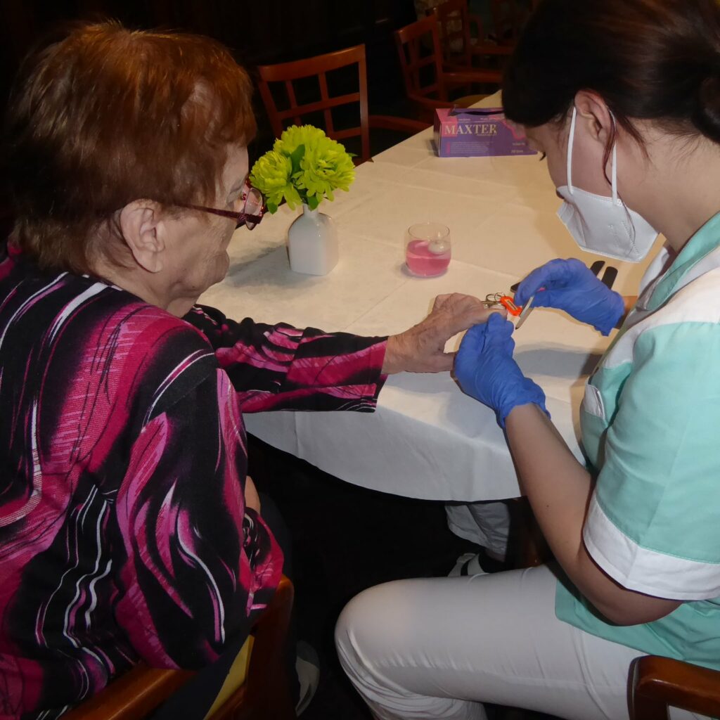 Na klientky Domova čekala uvolňující koupel pro ruce, příjemná masáž pomocí krémů, jemná manikúra a kdo chtěl, mohl si nechat nalakovat nehty barvami dle svého výběru. K tomu všemu byla připravená káva a drobné občerstvení.