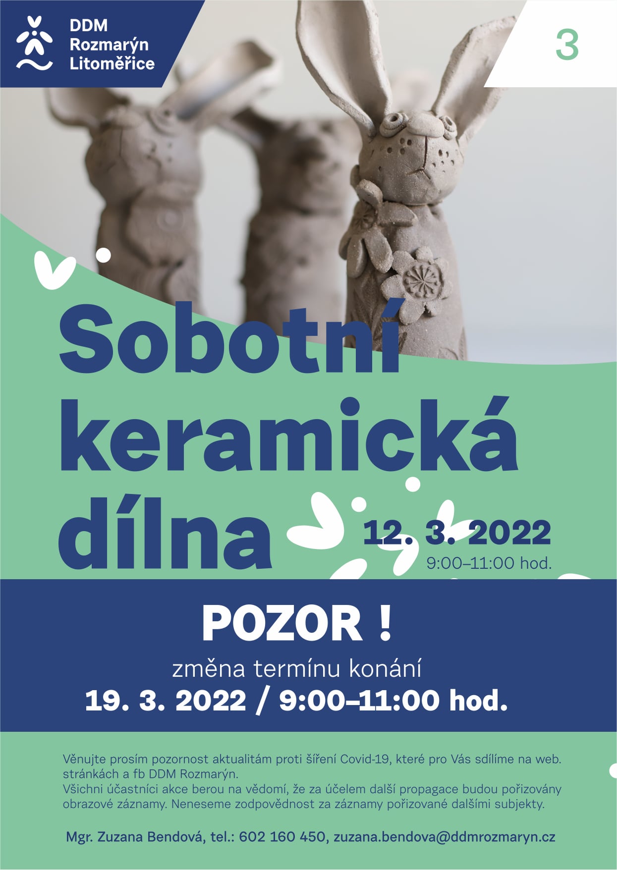 Litoměřice – Litoměřický Dům dětí a mládeže Rozmarýn zve tuto sobotu 19. března děti i dospělé do své keramické dílny. Tvořit se bude dopoledne – od 9 do 11 hodin. Přijďte!
