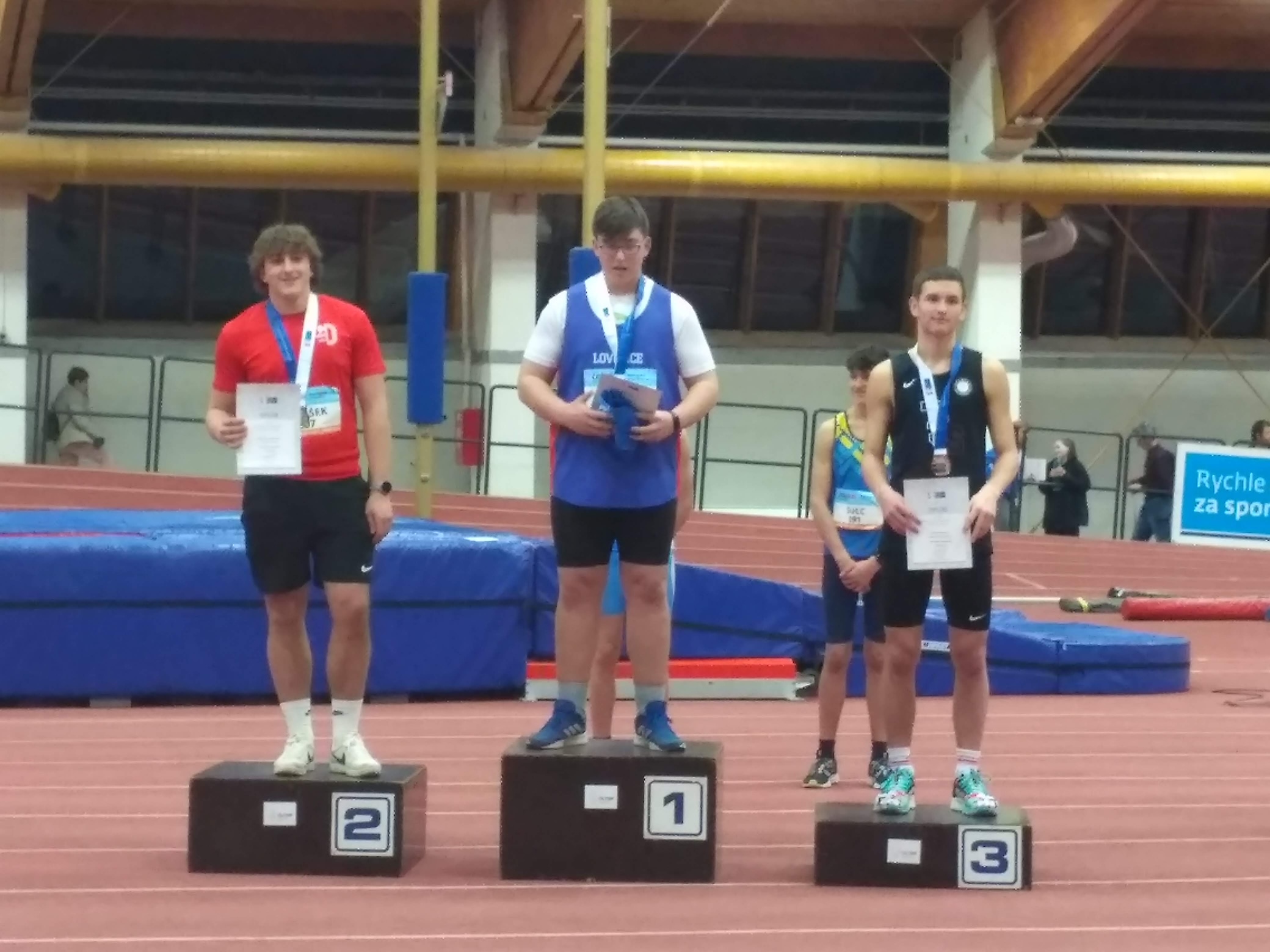 PRAHA / LOVOSICE – Poslední únorový víkend se v hale ve Stromovce konalo MČR žactva. Atleti ASK Lovosice tam zanechali výraznou stopu a ziskem dvou titulů v pořadí oddílů obsadili krásné 3.místo. První titul získal ve vrhu koulí Jaroslav Smělý výkonem 15,41, který znamenal nejen osobní rekord, ale i potvrdil vedoucí pozici v letošních tabulkách. Na tu se dostal 13.února na přeborech Ústeckého kraje žactva v Praze na Strahově, kde vyhrál krajského přeborníka za osobní rekord ( o 1,15 m ) 14,82 m a dostal se tím na vedoucí pozici letošních halových republikových tabulek. O druhou zlatou se zasloužil parádním výkonem na trati 3000m Dan Kačur, který to vzal stylem start-cíl. Časomíra se zastavila na 9:46,16, čímž překonal krajský halový rekord v této kategorii.