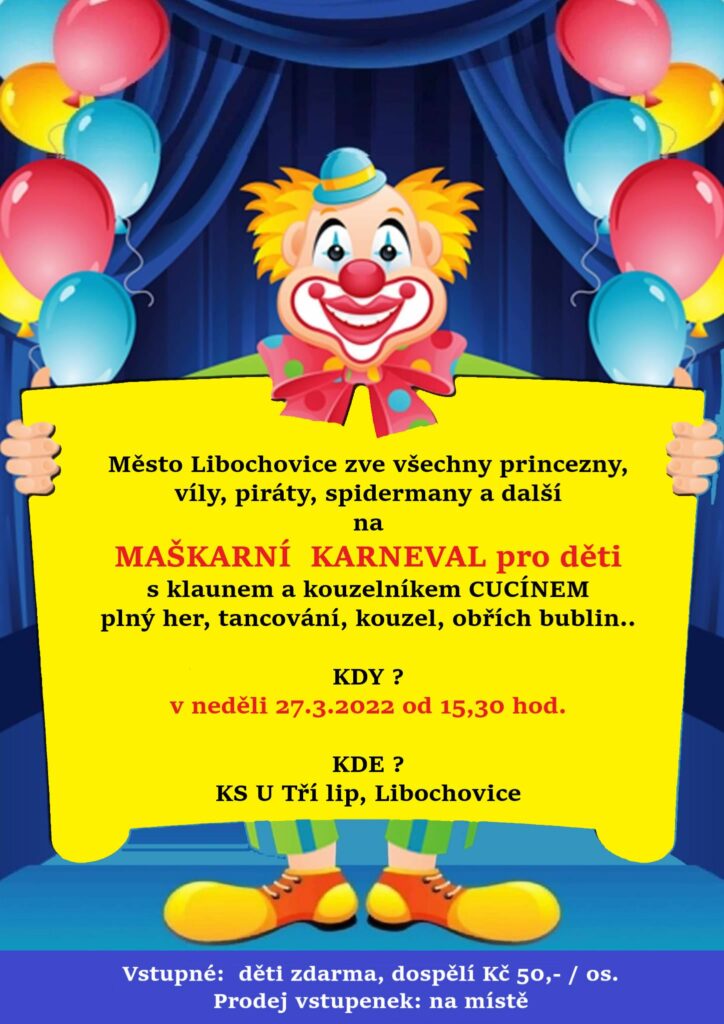Libochovice – Poslední březnovou neděli bude dětský karneval také v Libochovicích. Tam na něj můžete se svými ratolestmi přijít do Kulturního střediska U Tří lip. Akce začíná v 15.30 hodin, přičemž děti mají vstup zdarma!