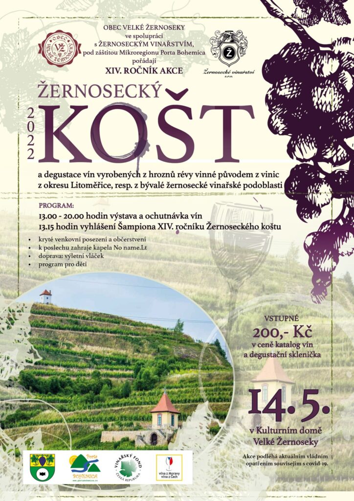Žernosecký košt pořádá obec Velké Žernoseky ve spolupráci s Žernoseckým vinařstvím pod záštitou Mikroregionu Porta Bohemica.