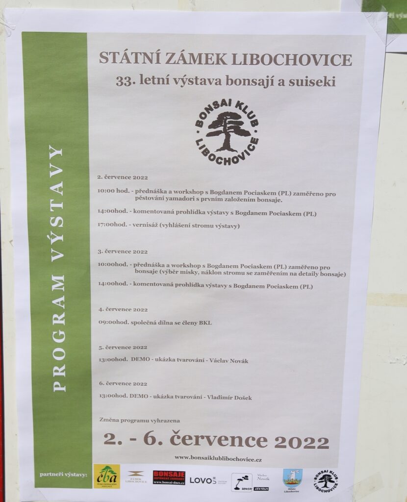 Libochovice – Na nádvoří Státního zámku Libochovice začala v sobotu 2. července třiatřicátá výstava bonsají. Výstava bude probíhat až do středy 6. července – vždy od 9 do 17 hodin.