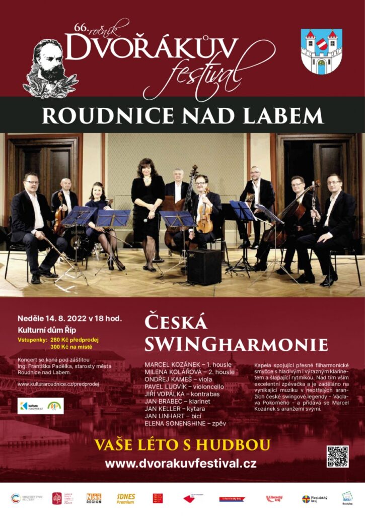 Roudnice nad Labem – 58 koncertů ve 41 městech a obcích po celé republice. To je Dvořákův festival, který tuto neděli 14. srpna dorazí i do Roudnice nad Labem. V Kulturním domě Říp zahraje od 18 hodin SwingHarmonie. Přijďte se přesvědčit, že i že vážná hudba může mít i pořádné grády!