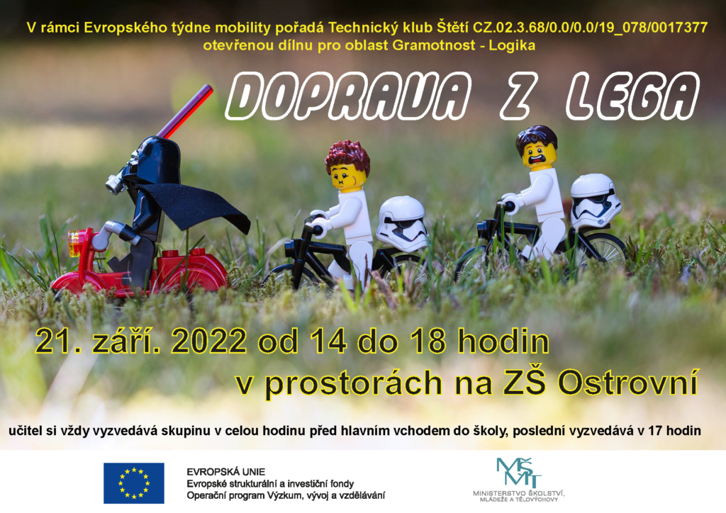 Ve středu 21. 9. 2022 připravil TECHNICKÝ KLUB ŠTĚTÍ otevřenou dílnu Doprava z lega (od 14:00 – 18:00 hodin v prostorách na ZŠ Ostrovní).